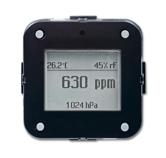 Busch Raumluftsensor CO2, Sicherheitstechnik, Busch-Raumluftsensor, Busch Raumluftsensor CO2 Zur Steuerung der Frischluftzufuhr in Räumen durch Öffnen oder Schalten von Fenster/Lüfter. Mit Anzeige für Kohlendioxid, Luftfeuchtigkeit, Temperatur und Luftdruck. Einstellwerte: Kohlendioxid 800 ppm . 1500 ppm, Luftfeuchtigkeit 40% . 95% . Mit 2 potentialfreien Relaiskontakten. Nennspannung: 230 V~ Nennstrom 6 A cos ? = 1 Ohne Spreizbefestigung. Passend für Zentralscheibe 6435-xxx.""