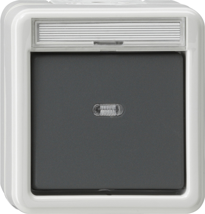 Wipp-Kontrollschalter 10 AX 250 V~ mit Beschriftungsfeld Ausschalter 2-polig Grau Merkmale: Mit Glimmlampenelement. Hinweise : Auch beleuchtet anschlie§bar.Rock.ind.sw.CB 2-p in.sp. WP SM GY Rocker indicator switch 10 AX 250 V~ with inscription space Circuit breaker, 2-pole grey Features: - With neon lamp element. Notes : - Can also be connected with illumination.
