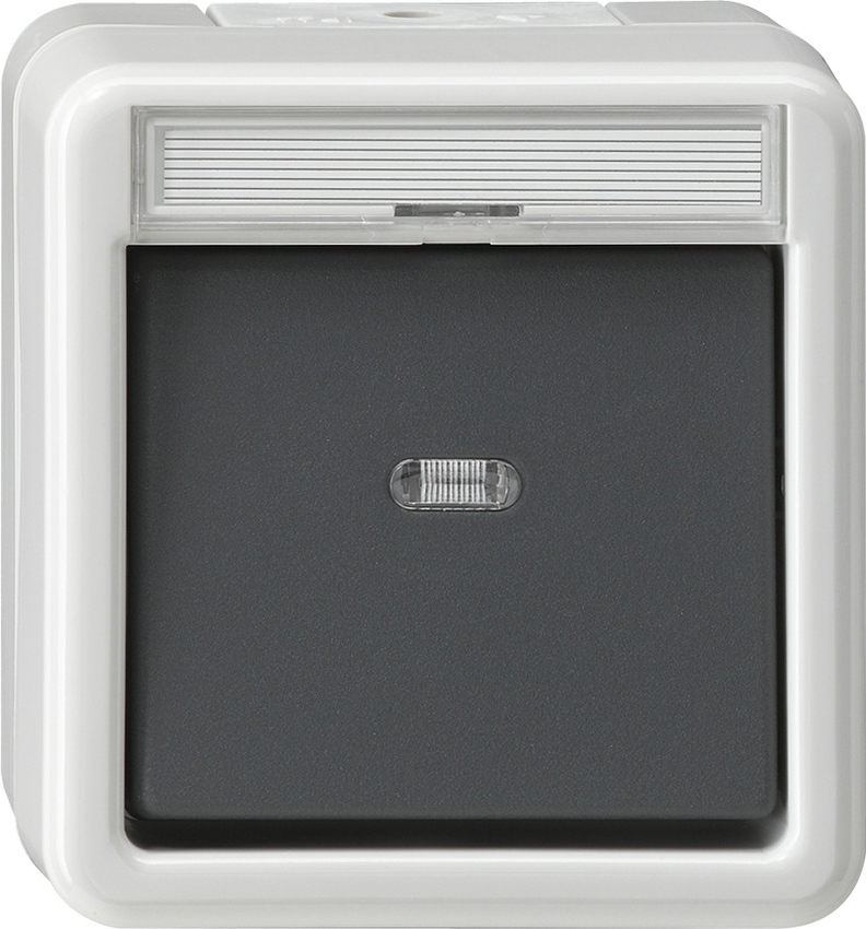 Wipptaster 10 AX 250 V~ mit Beschriftungsfeld Schlie§er 1-polig mit sep. Meldekontakt Grau Hinweise : Auch beleuchtet anschlie§bar.Rock.btn NO con.s.sig.in.sp. WP SM GY Rocker Button 10 AX 250 V~ with inscription space NO contact, 1-pole with sep. signal contact grey Notes : - Can also be connected with illumination.