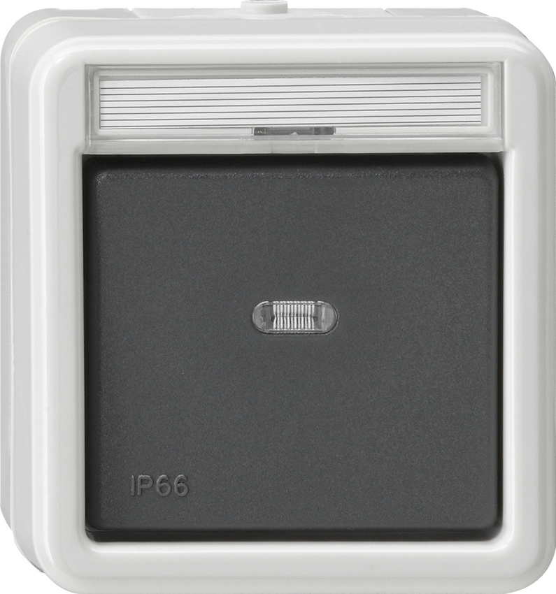 Wippschalter 10 AX 250 V~ mit Beschriftungsfeld Kreuzschalter Grau Hinweise : Auch beleuchtet anschlie§bar.Rock.sw.interm.sw.in.sp. WT SM GY Rocker switch 10 AX 250 V~ with inscription space Intermediate switch grey Notes : - Can also be connected with illumination.