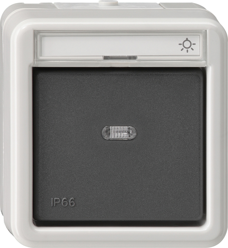 Wipptaster 10 AX 250 V~ mit Beschriftungsfeld Wechsler 1-polig Grau Hinweise : Auch beleuchtet anschlie§bar.Rock.btn 2-w m-c in.sp. WT SM GY Rocker Button 10 AX 250 V~ with inscription space 2-way momentary-contact, 1-pole grey Notes : - Can also be connected with illumination.