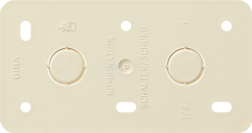 Mount.pl.2g combi SM CW Mounting plate for installing surface-mounted devices 2-gang for surface-mounted combination cream white Features: - Installation on wood walls, for example. - Flame-retardant.