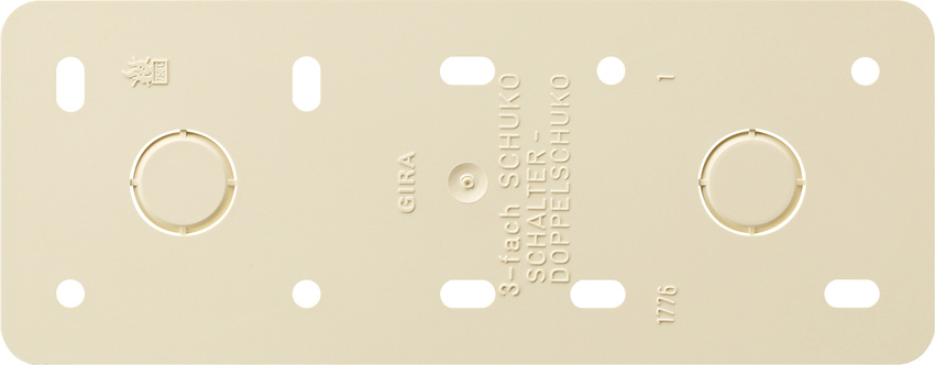Mount.pl.3g SM CW Mounting plate for installing surface-mounted devices 3-gang cream white Features: - Installation on wood walls, for example. - Flame-retardant.