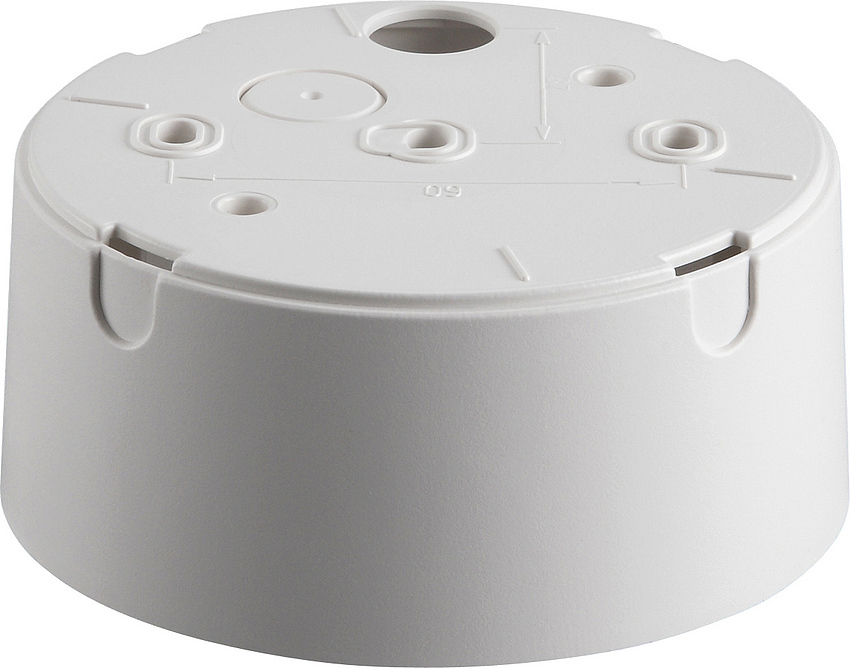 Aufputz-Geh_use fŸr Pr_senzmelder Reinwei§ Merkmale: Ein- oder Mehrpunktbefestigung m_glich. Hinweise : FŸr die Montage an der Decke. Nicht in Kombination mit Ballschutzkorb 2116 00 verwenden.SM-hous.pres.det. Accs. PW Surface-mounted housing for presence detector pure white Features: - Single-point or multi-point mounting possible. Notes : - For mounting on the ceiling. - Do not use in combination with protective cage 2116 00.