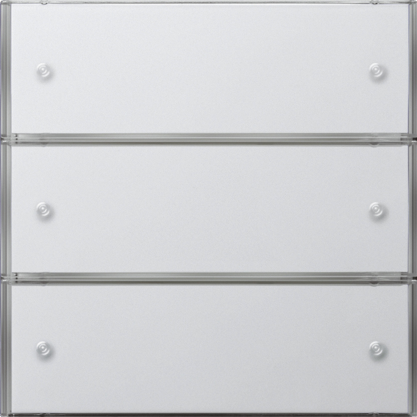 KNX Tastsensor 3 Komfort 3fach Reinwei§ gl_nzend Merkmale: Montage auf Busankoppler 3. Demontageschutz durch Verschraubung. Zwei mehrfarbige Status-LEDs je Bedienfl_che. Integrierter Temperatursensor zum Messen und Weiterleiten der lokalen Raumtemperatur. Wippen- oder Tastenfunktion fŸr jede Bedienfl_che einstellbar. Wippenfunktion: Schalten, Dimmen, Jalousiesteuerung, Wertgeber 1 Byte, Wertgeber 2 Byte und Szenennebenstelle. Tastenfunktion: Schalten, Dimmen, Jalousiesteuerung, Wertgeber 1 Byte, Wertgeber 2 Byte, Szenennebenstelle und Raumtemperaturregler-Nebenstelle. Reglernebenstelle: Betriebsmodusumschaltung mit normaler und hoher Priorit_t, definierte Wahl eines Betriebsmodus, Wechsel zwischen verschiedenen Betriebsmodi, Wechsel des Pr_senzzustands, Sollwertverschiebung. Sperrobjekt zum Sperren von einzelnen Tasten- bzw. Wippenfunktionen. Anzeige einer Alarmmeldung durch Blinken s_mtlicher LEDs. Mehrfarbige Status-LED (rot, grŸn, blau) ist global oder jeweils getrennt konfigurierbar. †ber den Bus kann eine Ÿberlagerte Funktion aktiviert werden, wodurch Farbe und Anzeigeinformation einzelner Status-LEDs priorit_tsbedingt ver_ndert werden k_nnen. Wei§e Betriebs-LED. Betriebs-LED EIN, AUS, automatische Abschaltung oder Ÿber Objekt schaltbar. Kommunikationsobjekt zur Helligkeitssteuerung der Status-LED und Betriebs-LED (z. B. fŸr n_chtliche Reduzierung der Helligkeit in Schlafr_umen). Hinweise : Professionelle Beschriftung Ÿber den Gira Beschriftungsservice www.beschriftung.gira.de.KNX PB sens.3 Kmf 3g F100 PW KNX pushbutton sensor 3 Komfort, 3-gang pure white glossy Features: - Mounting on bus coupler 3. - Disassembly safeguard by screw connection. - Two multicoloured status LEDs per operating surface. - Integrated temperature sensor for measuring and forwarding the ambient room temperature. - Rocker or button function can be set for each operating surface. - Rocker function: switching, dimming, blind control, value transmitter 1 byte, value transmitter 2 bytes, and scene auxiliary unit. - Button function: Switching, dimming, blind control, value transmitter 1-byte, value transmitter 2-byte, scene auxiliary unit, and room temperature controller auxiliary unit. - Controller auxiliary unit: Operating mode changeover with normal and high priority, defined selection of operating mode, toggle between various operating modes, switching of presence condition, setpoint offset. - Blocker for blocking individual button or rocker functions. - Alarm message displayed through all LEDs flashing. - Multicoloured status LED (red, green, blue) can be configured globally or separately. A superimposed function can be activated on the bus whereby the colour and display information of individual status LEDs can be modified according to priority. - White operating LED. - Operating LED ON, OFF, automatic switch-off, or switchable via object. - Communication object for brightness control of status LED and operating LED (e.g. for reducing brightness in bedrooms at night). Notes : - Professional labelling with the Gira Inscription Service www.marking.gira.com.