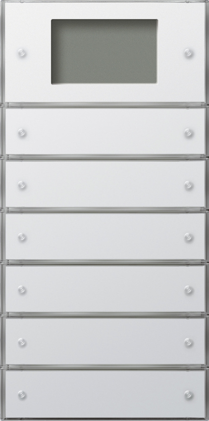 KNX Tastsensor 3 Plus 6fach (2+4) Reinwei§ gl_nzend Merkmale: Montage auf Busankoppler 3 oder Busankoppler 3 externer FŸhler. Demontageschutz durch Verschraubung. Grafikdisplay mit Hintergrundbeleuchtung und vielf_ltigen Anzeigem_glichkeiten, z. B. Temperatur, Uhrzeit, Datum, Alarm- und Hinweistexte. Wei§e Betriebs-LED. Mehrfarbige Status-LED (rot, grŸn, blau) Ÿber die ETS parametrierbar. Interner Temperatursensor zum Messen der lokalen Raumtemperatur. Tastsensor-Eigenschaften:: Wippen- oder Tastenfunktion fŸr jede Bedienfl_che einstellbar. Wippenfunktion: Schalten, Dimmen, Jalousiesteuerung, Wertgeber 1 Byte, Wertgeber 2 Byte, Szenennebenstelle, 2-Kanal-Bedienung und manuelle LŸftersteuerung. Tastenfunktion: Schalten, Dimmen, Jalousiesteuerung, Wertgeber 1 Byte, Wertgeber 2 Byte, Szenennebenstelle, 2-Kanal-Bedienung, Reglernebenstelle, Reglerbedienung, Heizungsuhrbedienung und manuelle LŸftersteuerung. Reglernebenstelle oder Reglerbedienung: Betriebsmodusumschaltung, (definierte Wahl eines Betriebsmodus oder Wechsel zwischen verschiedenen Betriebsmodi bei Reglernebenstelle), Wechsel des Pr_senzzustands, Sollwertverschiebung. Sperrobjekt zum Sperren von einzelnen Tasten- bzw. Wippenfunktionen. Anzeige einer Alarmmeldung durch Blinken s_mtlicher LEDs. Mehrfarbige Status-LED (rot, grŸn, blau) ist global oder jeweils getrennt konfigurierbar. †ber den Bus kann eine Ÿberlagerte Funktion aktiviert werden, wodurch Farbe und Anzeigeinformation einzelner Status-LEDs priorit_tsbedingt ver_ndert werden k_nnen. Betriebs-LED EIN, AUS, automatische Abschaltung oder Ÿber Objekt schaltbar. Kommunikationsobjekt zur Helligkeitssteuerung der Status-LED, Beschriftungsfeldbeleuchtung und Hintergrundbeleuchtung des Displays. Raumtemperaturregler-Eigenschaften:: Betriebsmodi: Komfort, Stand-by, Nacht und Frost- bzw. Hitzeschutz mit jeweils eigenen Temperatursollwerten (fŸr Heizen und bzw. oder KŸhlen). Komfortverl_ngerung durch Pr_senztaste. Frost- bzw. Hitzeschutzumschaltung durch Fensterstatus oder durch Frostschutzautomatik. Anzeige der Raumtemperaturregler-Informationen Ÿber das Ger_tedisplay. Wahlweise ein oder zwei Regelkreise. Je Heiz- oder KŸhlstufe sind verschiedene Regelungsarten konfigurierbar: PI-Regelung (stetige oder schaltende PWM) oder 2-Punkt-Regelung (schaltend). Regelparameter fŸr PI-Regler und 2-Punkt-Regler einstellbar. Interner Temperatursensor und bis zu zwei externe TemperaturfŸhler (1 x Objekt, 1 x bedrahtet) zur Raumtemperaturmessung m_glich. Optionaler externer bedrahteter FernfŸhler fŸr z. B. EstrichfŸhler bei Fu§bodenheizung. Heizungsuhr mit 28 Schaltzeiten. LC-Display Eigenschaften:: Grafikdisplay mit schaltbarer LED-Hintergrundbeleuchtung. 1-Bereichs- oder 2-Bereichsdarstellung. Textanzeigen im Display in den Sprachen: Deutsch, Englisch, Niederl_ndisch, Norwegisch, Russisch und Polnisch. Weitere Sprachen im Internet verfŸgbar. Hinweise : Professionelle Beschriftung Ÿber den Gira Beschriftungsservice www.beschriftung.gira.de.KNX PB sens.3 Plus 6g(2+4) F100 PW KNX pushbutton sensor 3 Plus, 6-gang (2+4) pure white glossy Features: - Mounting on bus coupler 3 or bus coupler 3 external sensor. - Disassembly safeguard by screw connection. - Backlit graphic display and various display possibilities, e.g. temperature, time, date, alarm texts, information texts. - White operating LED. - Multicoloured status LED (red, green, blue) can be parameterised via the ETS. - Internal temperature sensor for measuring ambient room temperature. Pushbutton sensor properties:: - Rocker or button function can be set for each operating surface. - Rocker function: Switching, dimming, blind control, value transmitter 1-byte, value transmitter 2-byte, scene auxiliary unit, 2-channel operation and manual fan control. - Button function: Switching, dimming, blind controller, value transmitter 1-byte, value transmitter 2-byte, scene auxiliary unit, 2-channel operation, controller auxiliary unit, controller operation, heater clock operation and manual fan control. - Controller auxiliary unit or controller operation: Operating mode changeover, (defined selection of operating mode or switching between various operating modes with controller auxiliary unit), switching of presence condition, setpoint offset. - Blocker for blocking individual button or rocker functions. - Alarm message displayed through all LEDs flashing. - Multicoloured status LED (red, green, blue) can be configured globally or separately. A superimposed function can be activated on the bus whereby the colour and display information of individual status LEDs can be modified according to priority. - Operating LED ON, OFF, automatic switch-off, or switchable via object. - Communication object for brightness control of status LED, illumination of inscription space and backlighting of display. Room temperature controller properties:: - Operating modes: Comfort, standby, night, and frost or heat protection with their own temperature setpoint values (for heating and or cooling). - Comfort extension using the presence button. - Frost or heat protection changeover via window status or via frost protection automatic function. - Room temperature controller information is shown in the device display. - Either one or two control circuits. - Various control types can be configured according to the heating or cooling level: PI control (constant or switching PWM) or 2-point control (switching). - Control parameters for PI controllers and 2-point controllers can be set. - Internal temperature sensor and up to two external temperature sensors (1 x object, 1 x wired) possible for room temperature measurement. - Optional external wired remote sensor, e.g. screed sensor for floor heating. - Heating clock with 28 switching times. LC display properties:: - Graphic display with switchable LED backlighting. - 1-range or 2-range display. - Text information in the display in the languages: German, English, Dutch, Norwegian, Russian and Polish. Other 