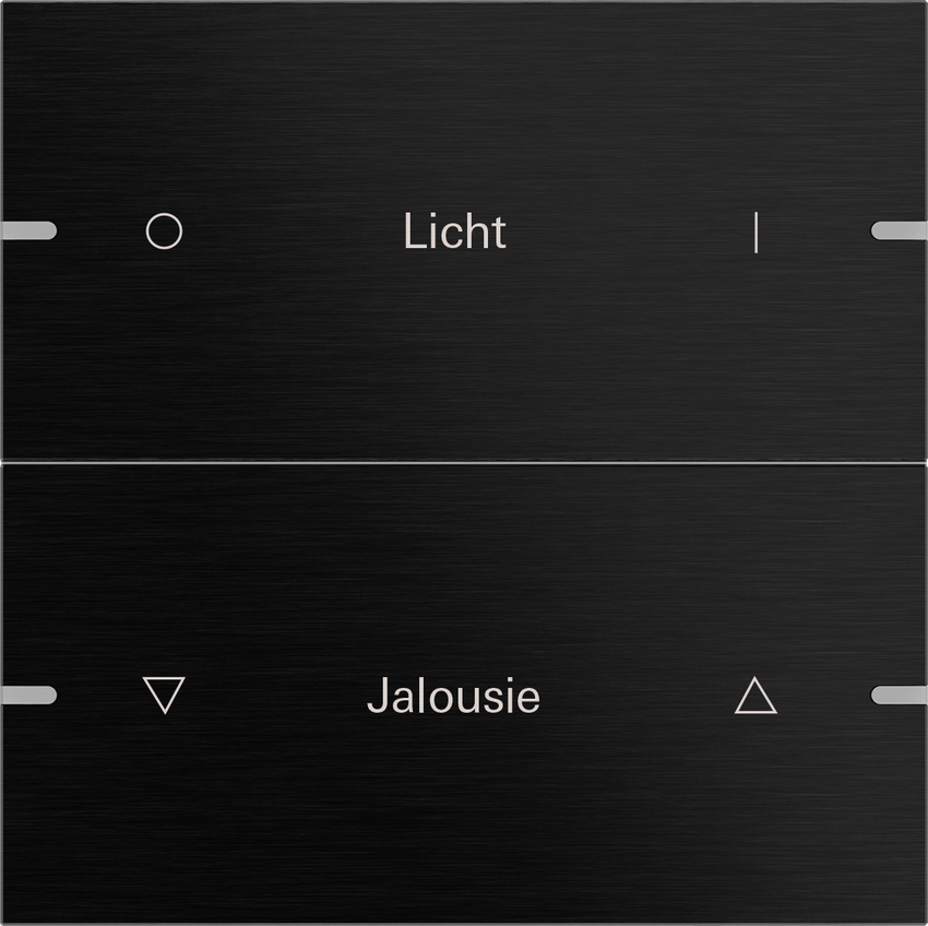Wippenset 2fach individuell fŸr Tastsensor 4 Aluminium Schwarz Hinweise : Beschreibbare Wippensets k_nnen mit einer individuellen Beschriftung versehen werden. Die Bestellung wird Ÿber den Gro§handel abgewickelt, der beim Bestellvorgang der Wippen angegeben wurde. Dieses Produkt kann ausschlie§lich Ÿber den Gira Beschriftungsservice bestellt werden. Professionelle Beschriftung Ÿber den Gira Beschriftungsservice www.beschriftung.gira.de.