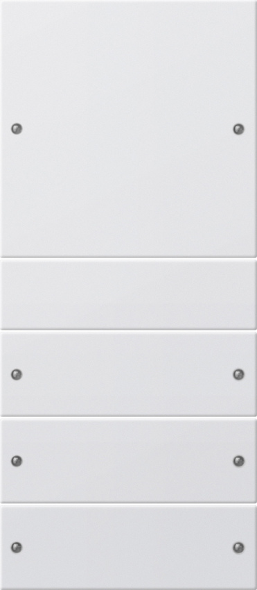Wippenset 4fach (1+3) System 55 Reinwei§ seidenmatt (lackiert) Hinweise : Beschreibbare Wippensets und Wippensets mit Beschriftungsfeld k_nnen mit einer individuellen Beschriftung versehen werden. Die Bestellung wird Ÿber den Gro§handel abgewickelt, der beim Bestellvorgang der Wippen angegeben wurde. Beschreibbare Wippensets und Wippensets ohne Beschriftungsfeld sind aus Metall. Dies kann bei Funkanwendungen zu Reichweiteneinbu§en fŸhren.Rock.set 4g (1+3) Sys55 PWml Rocker set, 4-gang (1+3) System 55 pure white matt (lacquered) Notes : - Inscribable rocker sets and rocker sets with inscription space can be provided with a customised inscription. The order is processed by the wholesaler specified during the rockers' order process. - Inscribable rocker sets and rocker sets without inscription space are made of metal, which can lead to impairments to the range in wireless applications.