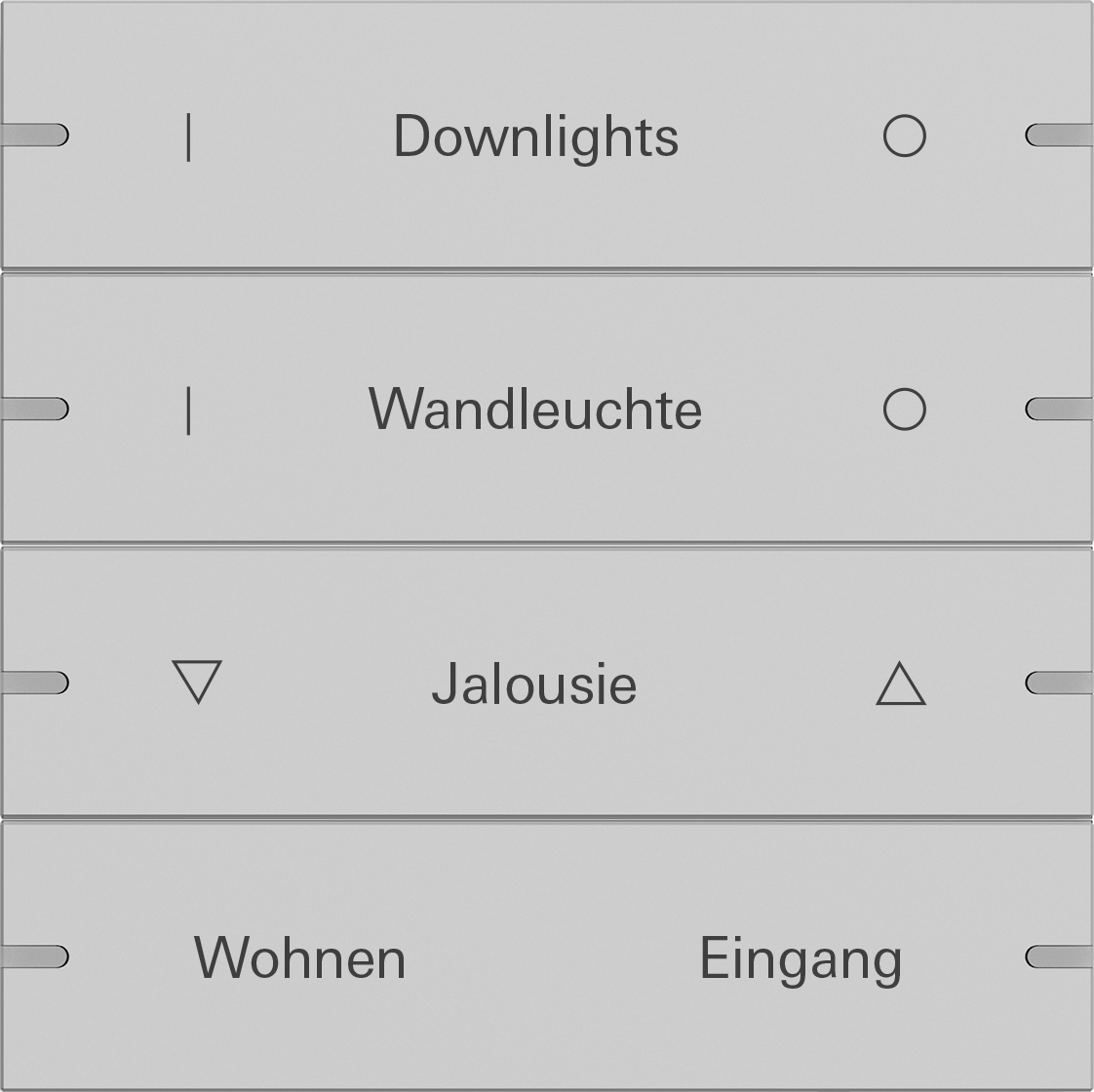Wippenset 4fach individuell fŸr Tastsensor 4 Grau matt (lackiert) Hinweise : Beschreibbare Wippensets k_nnen mit einer individuellen Beschriftung versehen werden. Die Bestellung wird Ÿber den Gro§handel abgewickelt, der beim Bestellvorgang der Wippen angegeben wurde. Dieses Produkt kann ausschlie§lich Ÿber den Gira Beschriftungsservice bestellt werden. Professionelle Beschriftung Ÿber den Gira Beschriftungsservice www.beschriftung.gira.de.
