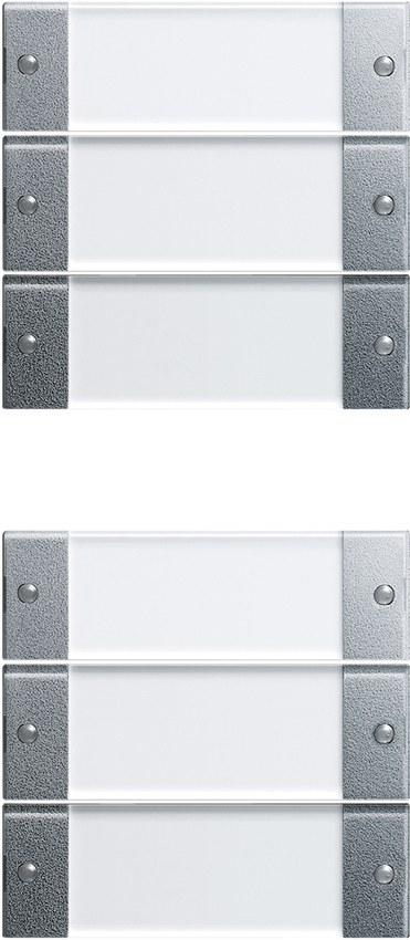 Wippenset 6fach (3+3) mit Beschriftungsfeld System 55 Klar Farbe Alu Hinweise : Beschreibbare Wippensets und Wippensets mit Beschriftungsfeld k_nnen mit einer individuellen Beschriftung versehen werden. Die Bestellung wird Ÿber den Gro§handel abgewickelt, der beim Bestellvorgang der Wippen angegeben wurde. Beschreibbare Wippensets und Wippensets ohne Beschriftungsfeld sind aus Metall. Dies kann bei Funkanwendungen zu Reichweiteneinbu§en fŸhren. Professionelle Beschriftung Ÿber den Gira Beschriftungsservice www.beschriftung.gira.de.Rock.set 6g (3+3) in.sp. Sys55 ClCAl Rocker set, 6-gang (3+3) with inscription space System 55 Clear colour aluminium Notes : - Inscribable rocker sets and rocker sets with inscription space can be provided with a customised inscription. The order is processed by the wholesaler specified during the rockers' order process. - Inscribable rocker sets and rocker sets without inscription space are made of metal, which can lead to impairments to the range in wireless applications. - Professional labelling with the Gira Inscription Service www.marking.gira.com.