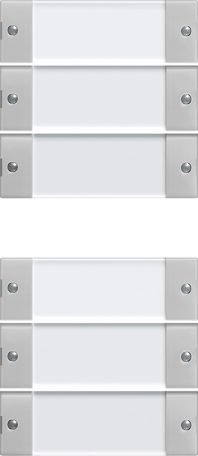 Wippenset 6fach (3+3) mit Beschriftungsfeld System 55 Klar Grau matt Hinweise : Beschreibbare Wippensets und Wippensets mit Beschriftungsfeld k_nnen mit einer individuellen Beschriftung versehen werden. Die Bestellung wird Ÿber den Gro§handel abgewickelt, der beim Bestellvorgang der Wippen angegeben wurde. Beschreibbare Wippensets und Wippensets ohne Beschriftungsfeld sind aus Metall. Dies kann bei Funkanwendungen zu Reichweiteneinbu§en fŸhren. Professionelle Beschriftung Ÿber den Gira Beschriftungsservice www.beschriftung.gira.de.