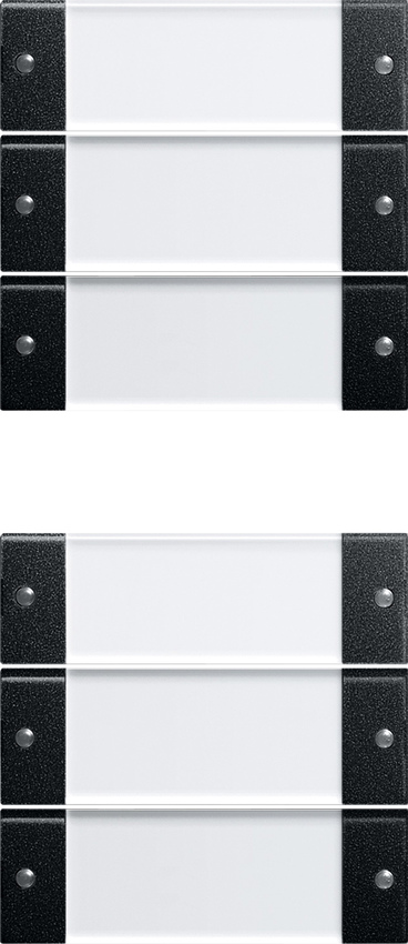 Wippenset 6fach (3+3) mit Beschriftungsfeld System 55 Klar Schwarz matt Hinweise : Beschreibbare Wippensets und Wippensets mit Beschriftungsfeld k_nnen mit einer individuellen Beschriftung versehen werden. Die Bestellung wird Ÿber den Gro§handel abgewickelt, der beim Bestellvorgang der Wippen angegeben wurde. Beschreibbare Wippensets und Wippensets ohne Beschriftungsfeld sind aus Metall. Dies kann bei Funkanwendungen zu Reichweiteneinbu§en fŸhren. Professionelle Beschriftung Ÿber den Gira Beschriftungsservice www.beschriftung.gira.de.Rock.set 6g (3+3) in.sp. Sys55 ClBkm Rocker set, 6-gang (3+3) with inscription space System 55 clear + black matt Notes : - Inscribable rocker sets and rocker sets with inscription space can be provided with a customised inscription. The order is processed by the wholesaler specified during the rockers' order process. - Inscribable rocker sets and rocker sets without inscription space are made of metal, which can lead to impairments to the range in wireless applications. - Professional labelling with the Gira Inscription Service www.marking.gira.com.