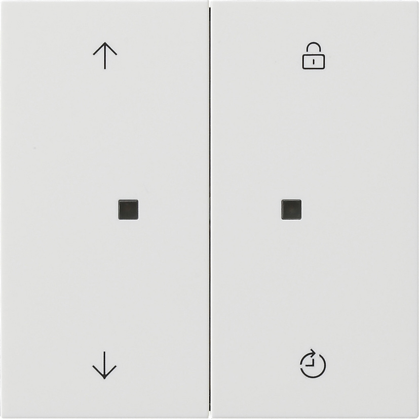 System 3000 Bedienaufsatz Memory Reinwei§ gl_nzend Merkmale: Speichern einer Auf- und Abfahrtzeit bzw. einer Ein- und Ausschaltzeit. Im Memorybetrieb werden diese Schaltzeiten im 24-Stunden-Rhythmus wiederholt. Sperrfunktion sperrt die Nebenstellenbedienung und deaktiviert den Memorybetrieb. Nachtmodus einstellbar. Status- und Funktions-LED leuchten nicht dauerhaft.S3000 op.top Memory F100 PW System 3000 operating top unit Memory pure white glossy Features: - Save a time for raising and lowering blinds or a switch-on and switch-off time. In memory mode, these switching times are repeated every 24 hours. - The blocking function blocks operation of the auxiliary unit and deactivates memory mode. - Adjustbable night mode. Status LED and function LED are not lit up continuously.