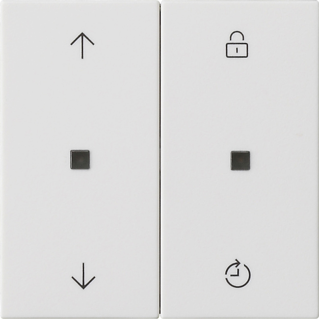 System 3000 Bedienaufsatz Memory Reinwei§ seidenmatt Merkmale: Speichern einer Auf- und Abfahrtzeit bzw. einer Ein- und Ausschaltzeit. Im Memorybetrieb werden diese Schaltzeiten im 24-Stunden-Rhythmus wiederholt. Sperrfunktion sperrt die Nebenstellenbedienung und deaktiviert den Memorybetrieb. Nachtmodus einstellbar. Status- und Funktions-LED leuchten nicht dauerhaft.S3000 op.top Memory Sys55 PWm System 3000 operating top unit Memory pure white matt Features: - Save a time for raising and lowering blinds or a switch-on and switch-off time. In memory mode, these switching times are repeated every 24 hours. - The blocking function blocks operation of the auxiliary unit and deactivates memory mode. - Adjustbable night mode. Status LED and function LED are not lit up continuously.