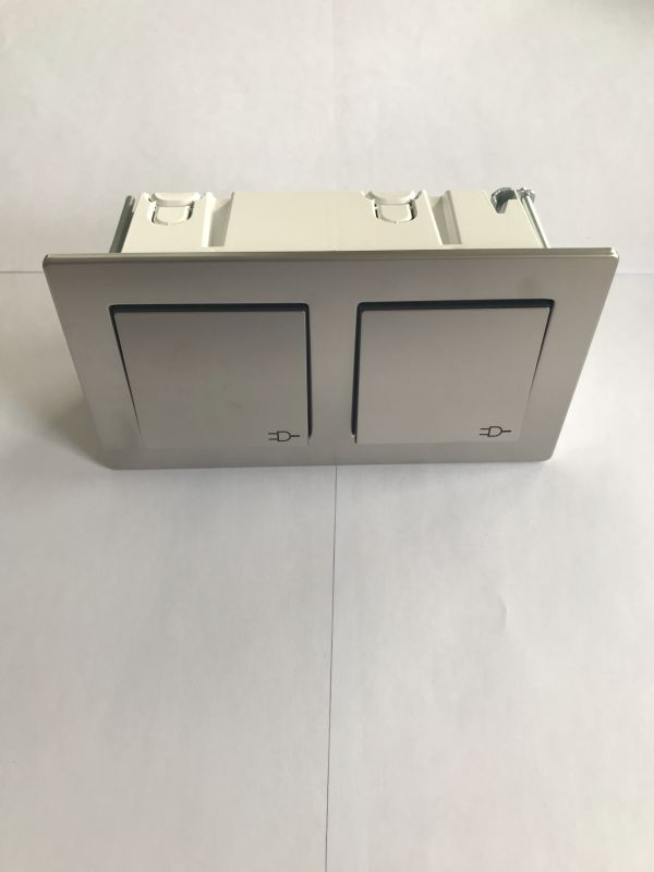 Abdeckrahmen für Kombinationensenkrecht und waagerecht 2fach Edelstahl In Verbindung mit Dichtungssets auch für die Installation wassergeschützt Unterputz IP 44 geeignet.
