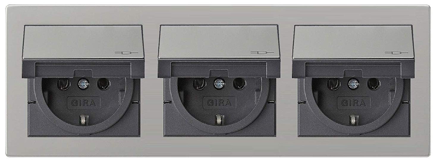 3 x Gira 0454600 Steckdose 16A 250 V~ mit Klappdeckel Edelstahl