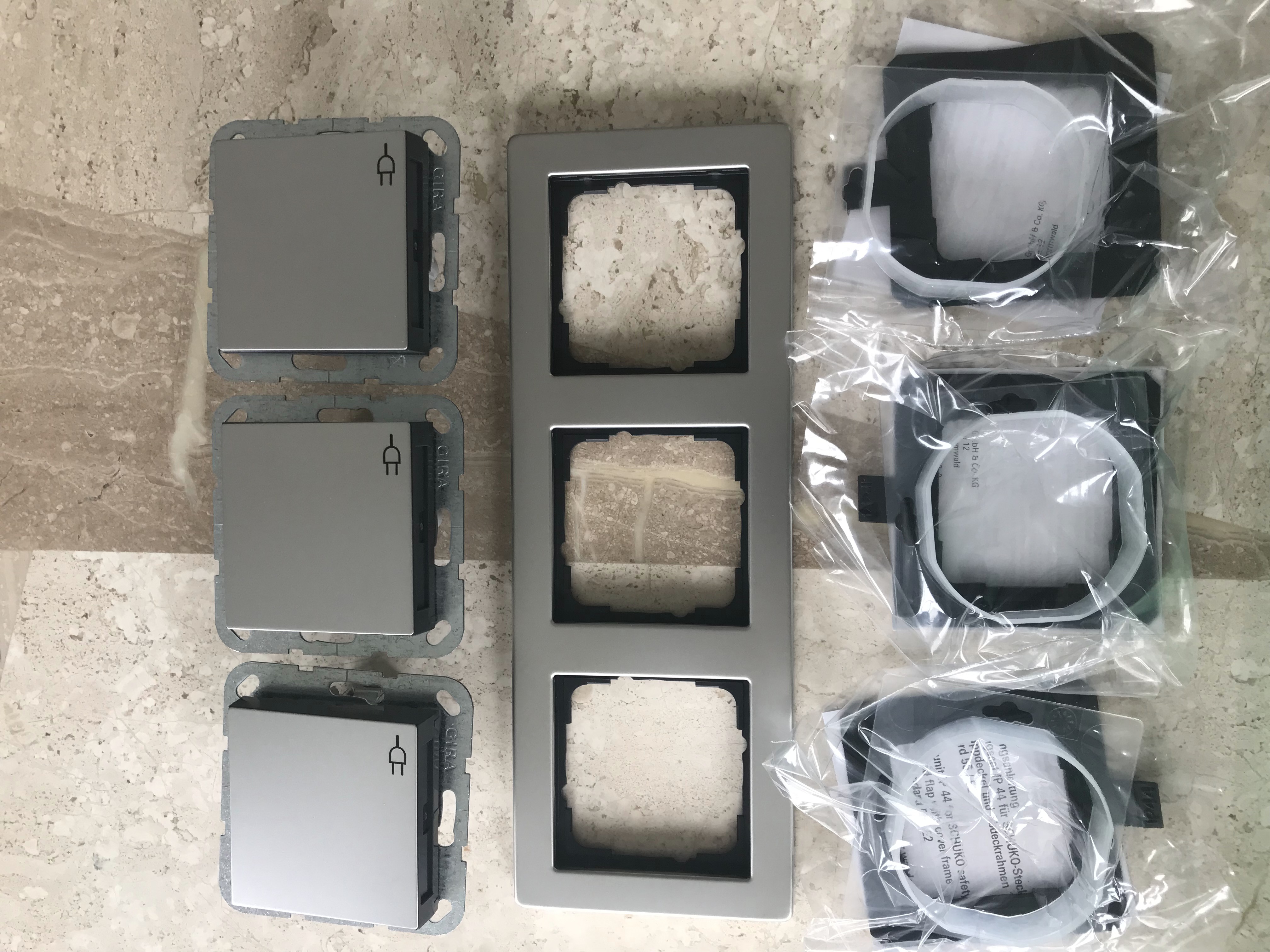 Gira E2 Edelstahl Steckdose mit Klappdeckel und Rahmen IP44 Komplettset