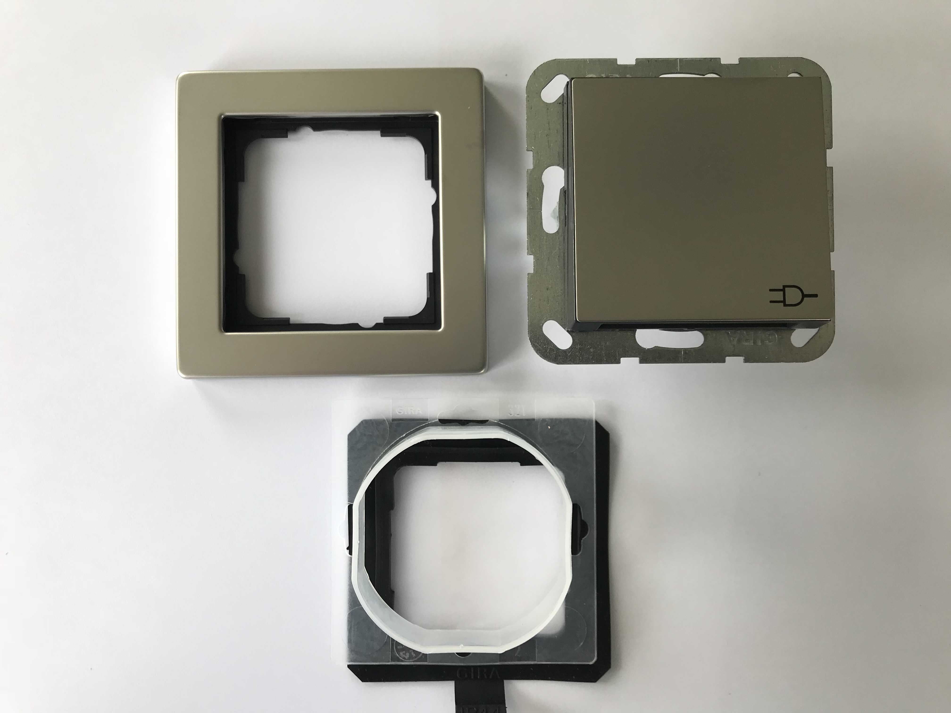 Gira E2 Edelstahl Steckdose mit Klappdeckel und Rahmen IP44 Komplettset Gira E2 Edelstahl Komplett Set