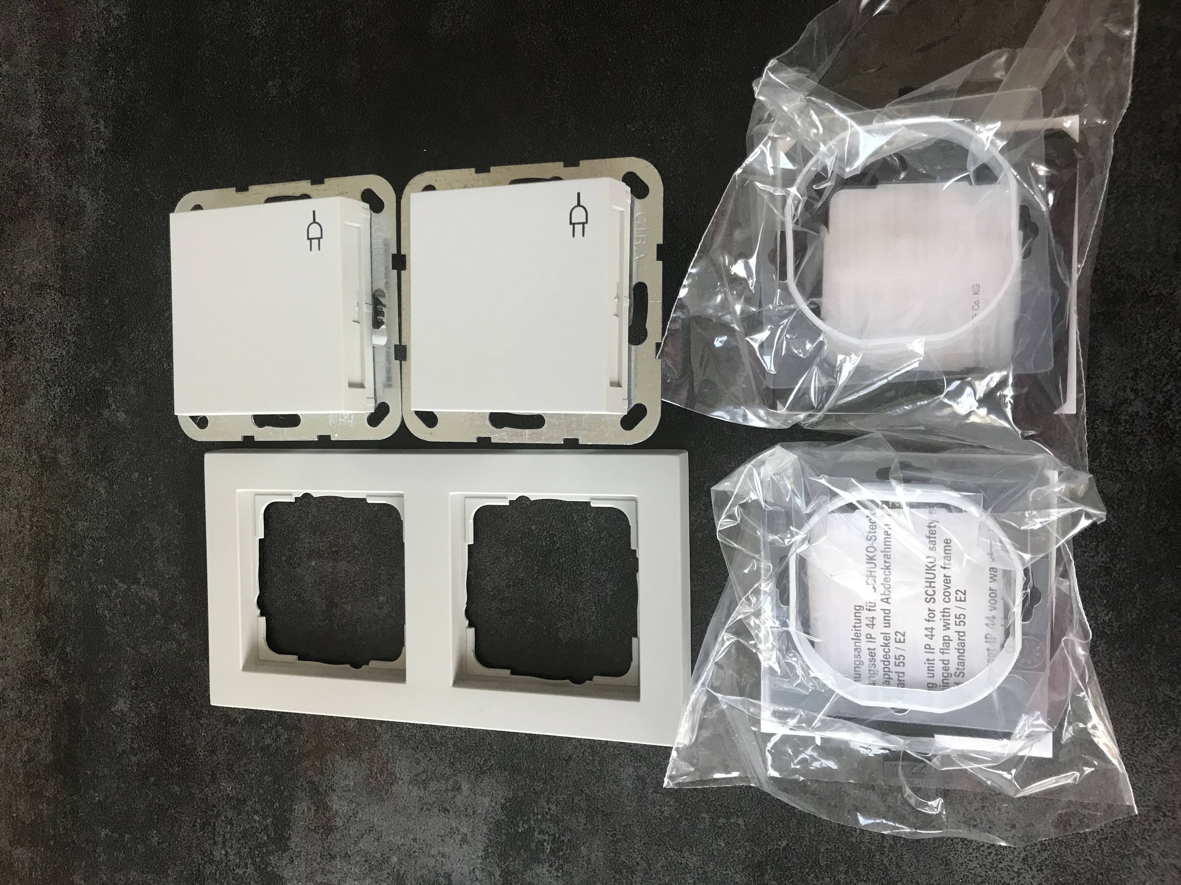 2 x Gira 4454015 Steckdose mit Klappdeckel Grau Matt 1 x Gira 021237 2-Fachrahmen Grau matt E2 2 x Gira 025227 IP44 Dichtungsset
