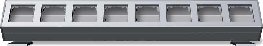 Profil 55 mit Befestigungswinkel 8fach Aluminium Merkmale: Installationsprofil aus Aluminium fŸr die waagerechte und senkrechte Montage. Mit Leitungs- und KanaleinfŸhrung. Die LeitungseinfŸhrung ist sowohl Unterputz als auch Aufputz m_glich. Vereinfachte Montage durch Einklipsen der Eins_tze. Hinweise : Wippschalter, Taster und SCHUKO-Steckdosen mit Klappdeckel sind beim System 55 auf der Wand in Verbindung mit diesen Geh_usen generell tropfwassergeschŸtzt (IP21). SchlŸsselschalter und 3-Stufenschalter k_nnen nicht in diese Geh_use eingebaut werden. †ber die Befestigungswinkel bzw. StandfŸ§e kann das Profil 55 sowohl als Tischgeh_use als auch unter H_ngeschr_nken oder in Ecken installiert werden.Prof.8g angl.br. P55 AL Profile 55 with angled mounting bracket 8-gang Aluminium Features: - Installation profile of aluminium for horizontal and vertical installation. - With cable and duct entry. Both flush-mounted and surface-mounted cable entries are possible. - Simplified installation due to clippable inserts. Notes : - With System 55, rocker switches, buttons, and SCHUKO socket outlets with hinged covers are generally protected against dripping water (IP21) on the wall in conjunction with these housings. - Key switches and three-stage switches cannot be installed in this housing. - Using the angled mounting bracket or base feet, the Profile 55 can be installed as a table-top housing, as well as under hanging cabinets or in corners.