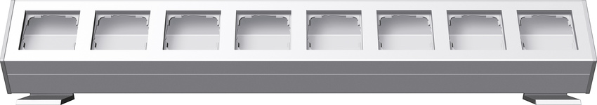 Profil 55 mit Befestigungswinkel 8fach Reinwei§ (lackiert) Merkmale: Installationsprofil aus Aluminium fŸr die waagerechte und senkrechte Montage. Mit Leitungs- und KanaleinfŸhrung. Die LeitungseinfŸhrung ist sowohl Unterputz als auch Aufputz m_glich. Vereinfachte Montage durch Einklipsen der Eins_tze. Hinweise : Wippschalter, Taster und SCHUKO-Steckdosen mit Klappdeckel sind beim System 55 auf der Wand in Verbindung mit diesen Geh_usen generell tropfwassergeschŸtzt (IP21). SchlŸsselschalter und 3-Stufenschalter k_nnen nicht in diese Geh_use eingebaut werden. †ber die Befestigungswinkel bzw. StandfŸ§e kann das Profil 55 sowohl als Tischgeh_use als auch unter H_ngeschr_nken oder in Ecken installiert werden.Prof.8g angl.br. P55 PWl Profile 55 with angled mounting bracket 8-gang Pure white (lacquered) Features: - Installation profile of aluminium for horizontal and vertical installation. - With cable and duct entry. Both flush-mounted and surface-mounted cable entries are possible. - Simplified installation due to clippable inserts. Notes : - With System 55, rocker switches, buttons, and SCHUKO socket outlets with hinged covers are generally protected against dripping water (IP21) on the wall in conjunction with these housings. - Key switches and three-stage switches cannot be installed in this housing. - Using the angled mounting bracket or base feet, the Profile 55 can be installed as a table-top housing, as well as under hanging cabinets or in corners.