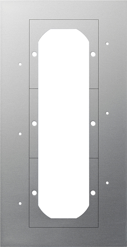 Montageplatte fŸr TŸrstation 3fach Merkmale: Montageplatte zum Abdecken der Installations_ffnungen bauseits vorhandener TŸrsprechanlagen bei der NachrŸstung des Gira TŸrkommunikations-Systems. In der Montageplatte befinden sich Bohrungen zur Wandmontage, sowie …ffnungen zur Aufnahme der Gira TŸrstation. Material: Aluminium eloxiert.Mount.pl.3g Door Mounting plates for door stations 3-gang Features: - Mounting plate for covering the installation openings of door intercom systems already present in the building when retrofitting the Gira door communication system. - Holes are provided in the mounting plate for wall installation, and there are openings for installing the Gira door station. - Material: Anodised aluminium.