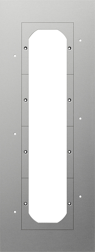 Montageplatte fŸr TŸrstation 4fach Merkmale: Montageplatte zum Abdecken der Installations_ffnungen bauseits vorhandener TŸrsprechanlagen bei der NachrŸstung des Gira TŸrkommunikations-Systems. In der Montageplatte befinden sich Bohrungen zur Wandmontage, sowie …ffnungen zur Aufnahme der Gira TŸrstation. Material: Aluminium eloxiert.Mount.pl.4g Door Mounting plates for door stations 4-gang Features: - Mounting plate for covering the installation openings of door intercom systems already present in the building when retrofitting the Gira door communication system. - Holes are provided in the mounting plate for wall installation, and there are openings for installing the Gira door station. - Material: Anodised aluminium.