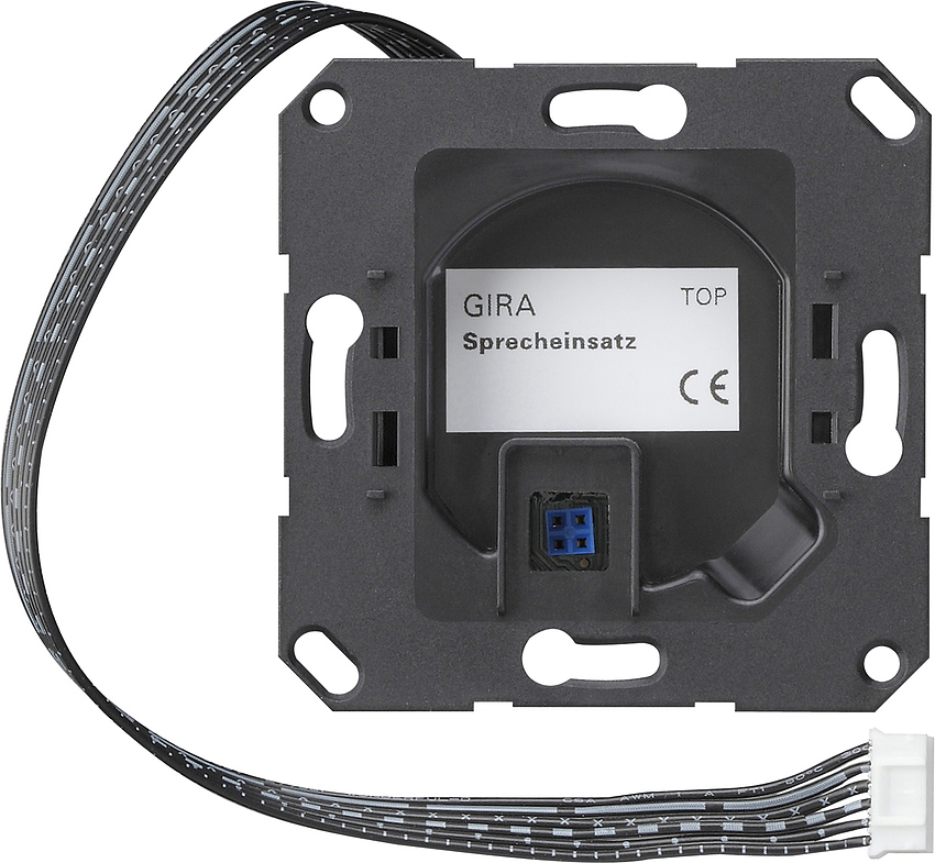 Sprecheinsatz Speech insert Features: - Fully pre-assembled surface-mounted door station for vertical surface-mounted installation. This allows quick and clean installation. - In the design of the design line Gira TX_44. - Torsionally rigid surface-mounted housing thanks to aluminium profile. - Frame made of shatter-proof thermoplastic with high resistance to ultraviolet light as well as a scratch-resistant, care-free surface. - Theft protection by means of Torx screws. - Signal transmission and supply of the audio and video components via reverse-polarity-protected and short-circuit-proof 2-wire bus. - One-man start-up with easy start-up procedure. - Weather-resistant speaker. - High-quality electret microphone. - Speakerphone function (voice-controlled talk-back with echo and background noise suppression). - Audible acknowledgement signal when a call button is pressed. - Adjustable voice volume. - White call-button illumination in LED technology. Even, clearly visible call button illumination is achieved via maintenance-free, energy-saving LED technology. - Sprayed-water proof call-button cover plate made of shock-resistant plastic. - Name plate of the call button can be exchanged without tools and without frame disassembly. - Professional labelling is available from the Gira Inscription Service www.marking.gira.com or using the Gira inscription software.