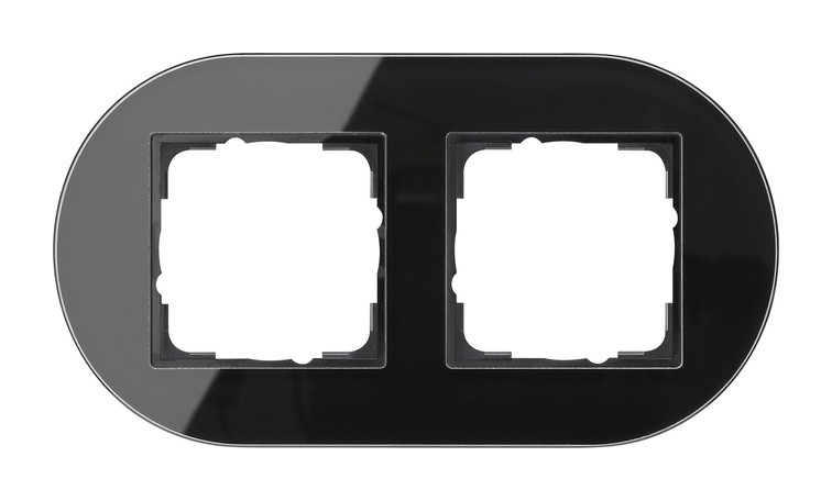 Cov.fr.2g Stud. GBk Gira Studio cover frame black glass 2-gang Installation in standard device boxes, can be extended as required through installation in device boxes with spacer glands. For surface-mounted installation: Gira Studio, housing, 1-gang, with cover frame, 1-gang, can be extended as required.