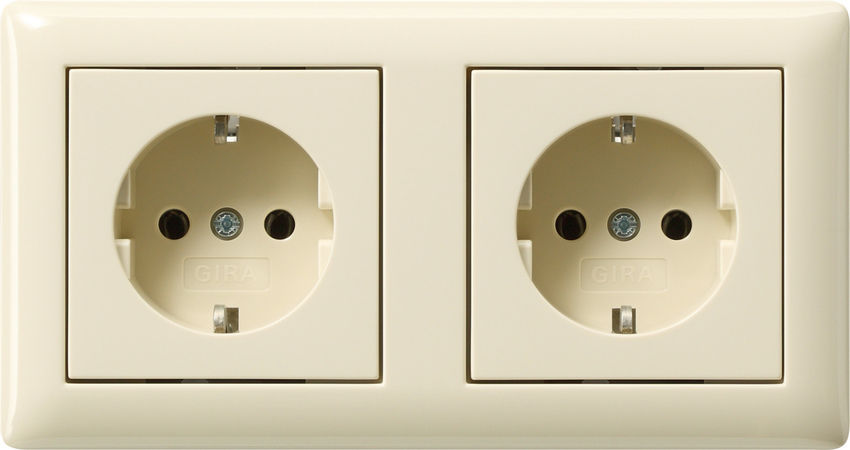 SCHUKO-Steckdosenset 2fach 16 A 250 V~ vorverdrahtet Standard 55 Cremewei§ gl_nzend Hinweise : Passend fŸr Einbaudose 2fach, z. B. Kaiser, Attema UD50 und PVD 50, HAF 250 und G250, sowie Klick-Kanaldosen Van Geel.SCHUKO set 2g p-w Std55 CW Pre-wired SCHUKO socket outlet set 2-gang 16 A 250 V~ Standard 55 cream white glossy Notes : - Suitable for 2-gang installation box, e. g. Kaiser, Attema UD50 and PVD 50, HAF 250 and G250, as well as click duct boxes from Van Geel.