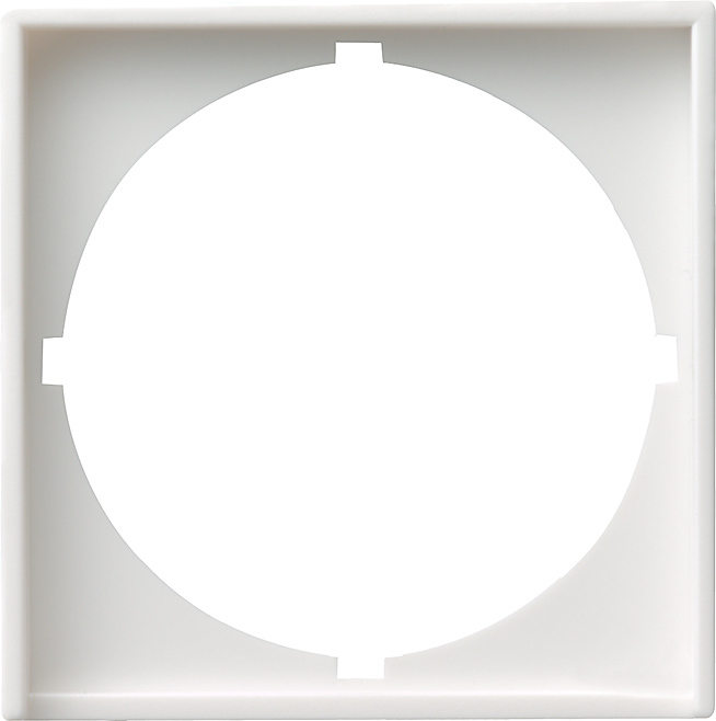 Adapterrahmen mit rundem Ausschnitt für Geräte mit Abdeckung (50 x 50 mm) Reinweiß glänzend Merkmale: Mit dem Adapterrahmen und Abdeckrahmen (1- bis 5fach) lassen sich Fremdgeräte mit quadratischer Zentralplatte in das Schalterprogramm integrieren. Adap.fr.round 50x50mm Sys55 PW Adapter frame with round cut-out for devices with cover (50 x 50 mm) pure white glossy Features: - Devices of other manufacturers with square central plates can be integrated in the switch range with this adapter frame and frame (1 to 5-gang).""