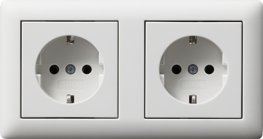 SCHUKO-Steckdosenset 2fach 16 A 250 V~ vorverdrahtet Standard 55 Reinwei§ seidenmatt Hinweise : Passend fŸr Einbaudose 2fach, z. B. Kaiser, Attema UD50 und PVD 50, HAF 250 und G250, sowie Klick-Kanaldosen Van Geel.SCHUKO set 2g p-w Std55 PWm Pre-wired SCHUKO socket outlet set 2-gang 16 A 250 V~ Standard 55 pure white matt Notes : - Suitable for 2-gang installation box, e. g. Kaiser, Attema UD50 and PVD 50, HAF 250 and G250, as well as click duct boxes from Van Geel.