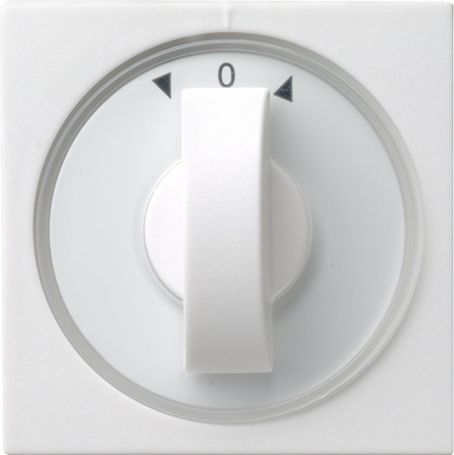 Abdeckung mit Knebel für Zeitschalter und Jalousieschalter bzw. -taster Reinweiß seidenmatt Hinweise : Durch Auswechseln der Symbolscheiben für Zeit (15 bis 120 min oder 30 bis 60 min) und Jalousie (, ), kann diese Abdeckung universell eingesetzt werden. Cov.tog.sw.time sw.blind Sys55 PWm Cover with toggle switch for time switch and blind switch or button pure white matt Notes : - This cover plate can be used universally by replacing the symbol plates for time (15 to 120 min or 30 to 60 min) and blind (, ).""
