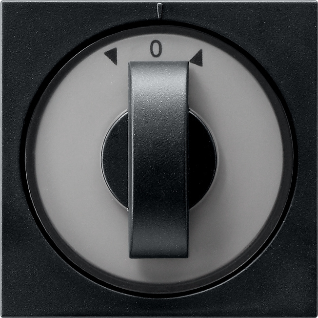 Abdeckung mit Knebel für Zeitschalter und Jalousieschalter bzw. -taster Schwarz matt Hinweise : Durch Auswechseln der Symbolscheiben für Zeit (15 bis 120 min oder 30 bis 60 min) und Jalousie (, ), kann diese Abdeckung universell eingesetzt werden. Cov.tog.sw.time sw.blind Sys55 BKm Cover with toggle switch for time switch and blind switch or button black matt Notes : - This cover plate can be used universally by replacing the symbol plates for time (15 to 120 min or 30 to 60 min) and blind (, ).""