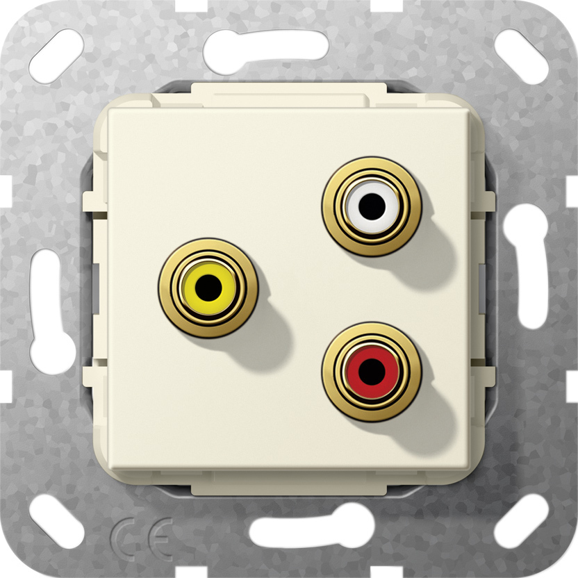 Einsatz Cinch Audio und Composite Video L_tanschluss Cremewei§ gl_nzend Hinweise : Nur fŸr Schraubbefestigung. Achtung! Bauraum fŸr Stecker und Biegeradien beachten. Bei Eins_tzen mit Kupplungen beachten: Nicht fŸr Kanalinstallation und Standard-Ger_tedose geeignet. Anschluss mit Winkelsteckern empfohlen. Installationsempfehlung: Kaiser Elektronic-Dosen Unterputz-Montage: Kaiser Best.-Nr.: 1068-02 Hohlwandmontage: Kaiser Best.-Nr.: 9062-94 Betoninstallation: Kaiser Best.-Nr.: 1268-40C-aud.c-vid.solder Ins. CW Cinch audio and composite video insert Solder connection cream white glossy Notes : - For screw mounting only. - Important! Observe construction space for plug and bending radii. - If using with gender changers: Not suitable for duct installation or a standard device box. Connection with angled plug recommended. - Installation recommendation: Kaiser electronic outlets flush-mounted installation: Kaiser Order No.: 1068-02 hollow-wall installation: Kaiser Order No.: 9062-94 concrete installation: Kaiser Order No.: 1268-40