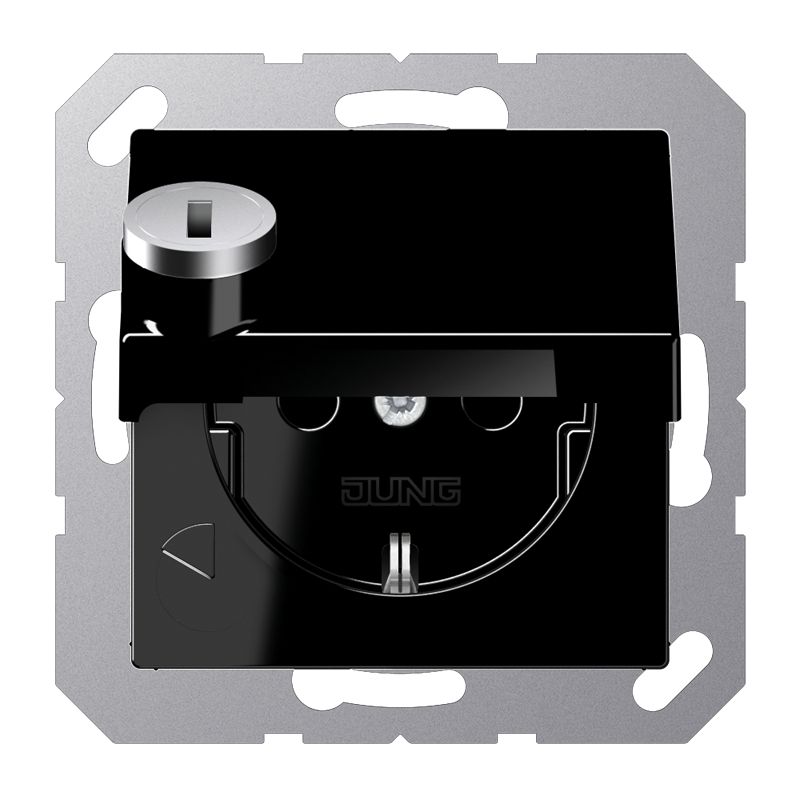 Jung SCHUKO Steckdose, 16 A 250 V ~, Berührungsschutz, Klappdeckel, mit Sicherheitsschloss, Thermoplast, Serie A, schwarz A1520BFKLSLSW
