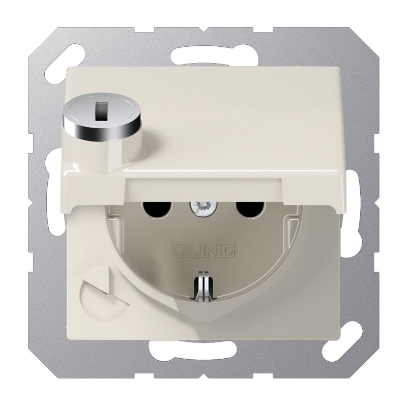 Jung SCHUKO Steckdose, 16 A 250 V ~, Berührungsschutz, Klappdeckel, mit Sicherheitsschloss, Thermoplast, Serie AS, weiß AS1520BFKLSL