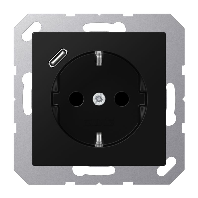 Jung SCHUKO Steckdose 16 A 250 V ~, mit USB-Ladegerät 1 x Typ C, Berührungsschutz, Serie A, graphitschwarz matt A1520-18CSWM