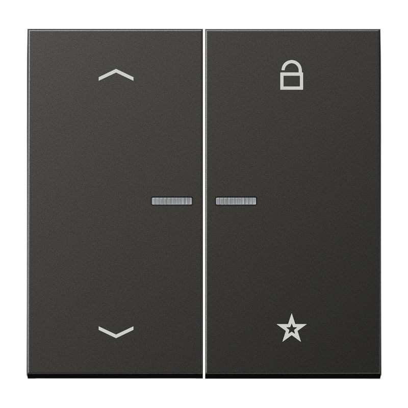 Steuertaste Universal, mit Symbolen Pfeile, mit Jalousieeinsatz Lüftungsposition des Behanges speicherbar, mit Dimmeinsatz und DALI-Taststeuergerät Einschalthelligkeit von Beleuchtung speicherbar, Sperrfunktion, 2 Schaltzeiten speicherbar (Wiederholung im 24-Stunden-Rhythmus), für Jalousieeinsätze Art.-Nrn.: 1730 JE und 1731 JE, Schalteinsätze Art.-Nrn.: 1701 SE und 1704 ESE, Dimmeinsätze 1710 DE und 1711 DE, DALI-Taststeuergerät Art.-Nr.: 1713 DSTE und Nebenstelleneinsatz Art.-Nr.: 1723, zum manuellen und zeitgesteuerten Bedienen von Jalousien, Rollläden, Markisen oder Beleuchtung