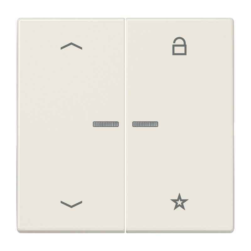 Steuertaste Universal, mit Symbolen Pfeile, mit Jalousieeinsatz Lüftungsposition des Behanges speicherbar, mit Dimmeinsatz und DALI-Taststeuergerät Einschalthelligkeit von Beleuchtung speicherbar, Sperrfunktion, 2 Schaltzeiten speicherbar (Wiederholung im 24-Stunden-Rhythmus), für Jalousieeinsätze Art.-Nrn.: 1730 JE und 1731 JE, Schalteinsätze Art.-Nrn.: 1701 SE und 1704 ESE, Dimmeinsätze 1710 DE und 1711 DE, DALI-Taststeuergerät Art.-Nr.: 1713 DSTE und Nebenstelleneinsatz Art.-Nr.: 1723, zum manuellen und zeitgesteuerten Bedienen von Jalousien, Rollläden, Markisen oder Beleuchtung