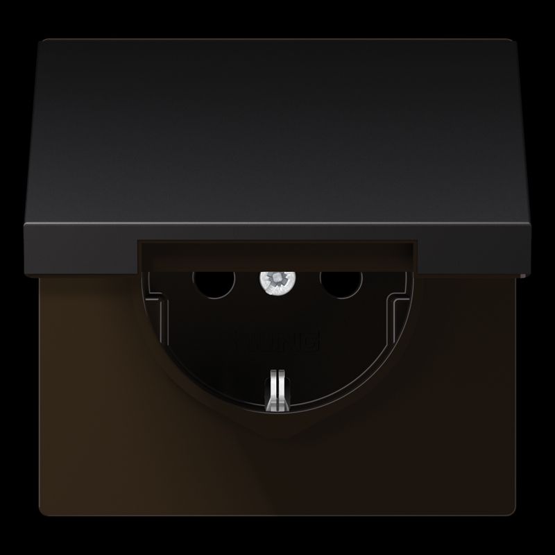 Jung SCHUKO Steckdose, 16 A 250 V ~, integrierter erhöhter Berührungsschutz, SAFETY+, Klappdeckel, Aluminium lackiert, Serie LS, dark AL1520KIKLD