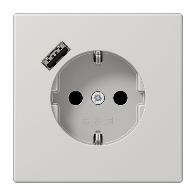 Jung SCHUKO Steckdose 16 A 250 V ~, mit USB-Ladegerät 1 x Typ A, Berührungsschutz, Serie LS, lichtgrau LS1520-18ALG