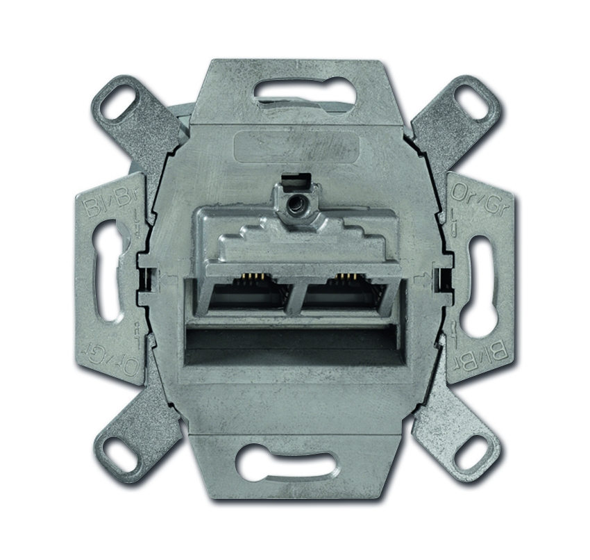 Datendose, Category 6, geschirmte LSA-Plus-Anschlussklemmen, 2 x 8-polig, für 2 Terminals, erfüllte Anforderungen: RJ-45-Anschlussdosen für Netzwerke nach Category 6, Class E (1 Gbit/s / 250 MHz), Entspricht Cat. 6/Class E gem. ISO/IEC 11801:2011-06 und DIN EN 50173-1:2011-09 = 2500 Steckkzyklen, geeignet für RJ 11/12, geeignet für PoE+ gemäß IEEE 802.3at""