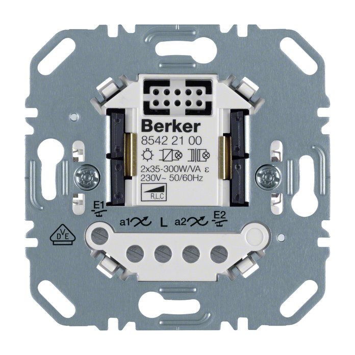 Universal Tastdimmer 2fach 2-Draht. Universal-Tastdimmer 2-fach Elektronikplattform, niedriger Eigenenergiebedarf, automatische Einstellung der minimalen Starthelligkeit fŸr 230 V LED- und Energiesparlampen, lampenschonender Softanlauf, Phasenan- oder Phasenabschnitt je nach Lastart, selbstlernend, kurzschlussfest und Ÿberlastsicher (elektronische Sicherung), optionale Feineinstellung der Lastart, mit 2 Nebenstelleneing_ngen fŸr Taster (Schlie§er) Einfl_chenbedienung, auch geeignet fŸr das Aufstecken passender KNX Funk Aufs_tze, keine leitende Verbindung zwischen Tragring und Spreizkrallen, mit Schraubklemmen.