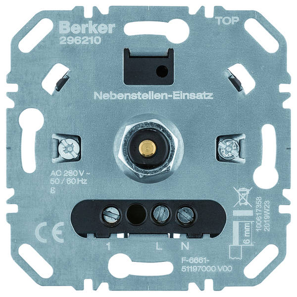 Nebenstellen-Einsatz fŸr Universal-Drehdimmer Komfort, Softrastung, Lichtst. Arsys Programmbeschreibung (Langtext) Schalterprogramm aus Duroplast, kratzunempfindlich, in den Farben polarwei§ (_hnlich RAL 9010), wei§ (_hnlich RAL 1013), braun gl_nzend (_hnlich RAL 8011). Zus_tzliche Materialien Edelstahl, Aluminium hellbronze lackiert und Aluminium gold eloxiert erh_ltlich. Rahmen 1-fach - 5-fach, unterschiedliche Gestaltung fŸr senkrechte und waagerechte Montage. Rechteckige Grundform und abgerundeten Ecken mit 4,5 mm Rundungsradius, mit einer kugelf_rmig (500 mm Durchmesser) gew_lbten Geometrie und gl_nzenden oder matten Oberfl_chen. Wippen/Abdeckungen mit einer Kantenl_nge von 52,5 mm x 71 mm und abgerundeten Ecken mit 2 mm Rundungsradius. Installationsger_te sind teilweise mittels eines separaten Dichtungssets wassergeschŸtzt UP IP 44 einsetzbar. M_glichkeit der Beschriftung teilweise durch beschriftbare Wippen/Abdeckungen m_glich. Abriebfeste Kennzeichnung der Produkte durch Bedruckung. ? Beleuchtbar nach Arbeitsst_ttenverordnung. Das eingesetzte Material ist halogenfrei und UV-stabil, die Oberfl_chen sind leicht zu reinigen und sind desinfektionsmittelbest_ndig. †ber 200 Anwendungen.