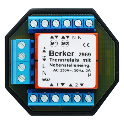 RolloTec Trennrelais Hauselektronik grau. RolloTec® Trennrelais mit Nebenstellenabgängen, zum Schalten von 2 Jalousie-/Rollladenmotoren, mit separater Netzeinspeisung, erforderlich zur elektrischen Motorentkopplung, mit Zentraleingang z.B. für RolloTec® Schaltuhr, mit 2 Nebenstellenabgängen für Einzelbedienung, mit Schraubklemmen, Neutralleiter erforderlich.
