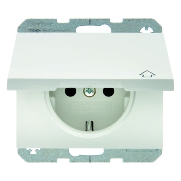 Steckdose SCHUKO mit Klappdeckel u. erh.BS K.1 polarweiß, glänzend. Steckdose SCHUKO® mit Klappdeckel, arretiert beim Öffnen in Endstellung, mit Aufdruck, mit erhöhtem Berührungsschutz, mit Steckklemmen nach VDE 0620 als Verbindungsklemmen ausgeführt und genehmigt, mit einteiligem Erdungsbügel. Unterputz-Installation, Flächenprogramm. Material: Kunststoff, Thermoplast, bruchsicher, hochglänzende Oberfläche, halogenfrei.""