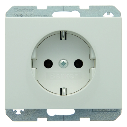 Steckdose Schuko, K.1, polarwei§ gl_nzend. Steckdose SCHUKO¨ mit Steckklemmen nach VDE 0620 als Verbindungsklemmen ausgefŸhrt und genehmigt, mit einteiligem ErdungsbŸgel. Unterputz-Installation, Fl_chenrogramm. Material: Kunststoff, Thermoplast, bruchsicher, hochgl_nzende Oberfl_che, halogenfrei.