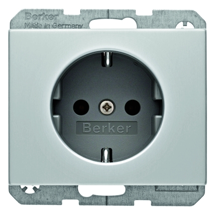 Steckdose Schuko K.5, mit Schraub-Liftklemmen, K.5, Aluminium eloxiert. Steckdose SCHUKO¨ mit Steckklemmen nach VDE 0620 als Verbindungsklemmen ausgefŸhrt und genehmigt, mit einteiligem ErdungsbŸgel. Unterputz-Installation, Fl_chenrogramm. Material: Kunststoff, Thermoplast, Aluminium ummantelt, halogenfrei.