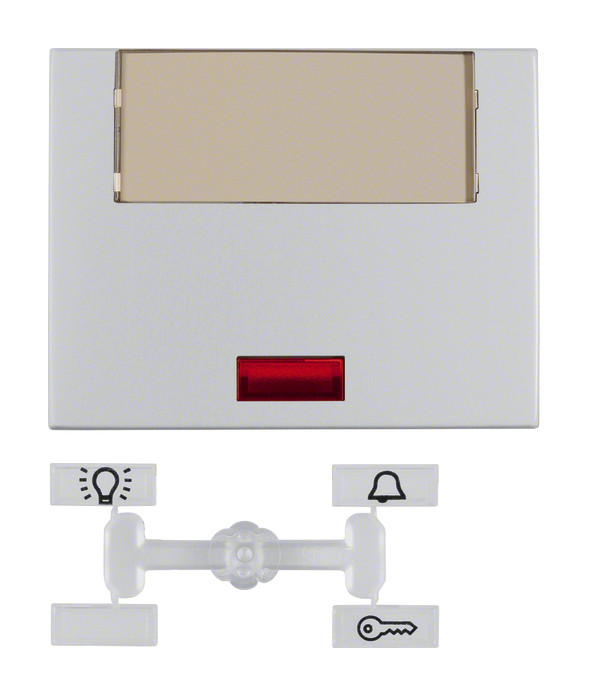 Wippe mit 5 beiliegenden Linsen und gro§em Beschriftungsfeld K.5 Alu. Wippe mit gro§em Beschriftungsfeld (ca.50 x 20 mm), mit 5 beiliegenden Linsen (mit Symbolen Licht, Klingel oder TŸr, sowie neutral klar und neutral rot). FŸr Wippschalter und Wipptastschalter Aus/Wechsel/Kreuz, Wipptaster. Unterputz-Installation, Fl_chenprogramm. Material: Kunststoff, Thermoplast, bruchsicher, halogenfrei.